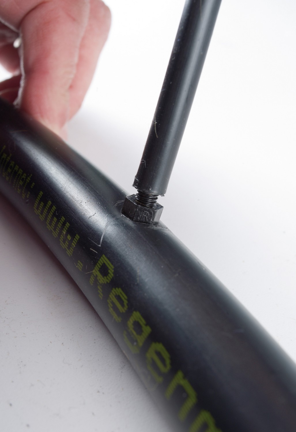 Jetzt wird es noch einfacher! An der ersten gewünschten Sprühstelle stechen Sie einfach mit der Spitze des Installationsschlüssels ein Loch in den Wasserstrang. Ein Dosierstück wird auf ein Steigrohr geschraubt, eine Düse auf das Dosierstück geklipst und anschließend das so vorbereitete Steigrohr mit dem Adapter (ist schon auf dem Steigrohr vormontiert) in das Loch geschraubt. Die Sprühweiten und -formen der Düsen und Dosierstücke können Sie frei aus dem Sortiment wählen und einsetzen. Das gleiche Spiel geschieht an den weiteren Sprühstellen.