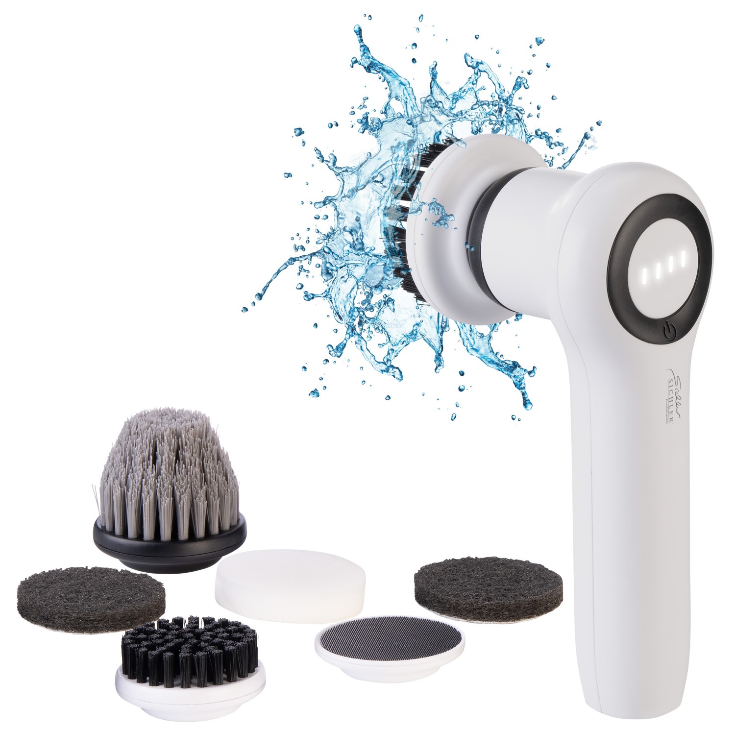 Sie verfügt über acht verschiedene, austauschbare Aufsätze für unterschiedliche Oberflächen. Der integrierte Li-Ion-Akku mit 1.300 mAh (4,81 Wh) ermöglicht eine Betriebsdauer von bis zu vier Stunden und lässt sich per USB-C aufladen. Dank des nach IPX5-Standard wetterfesten Gehäuses kann die Bürste im Badezimmer, in der Dusche, in der Küche sowie im Außenbereich eingesetzt werden, beispielsweise zur Reinigung von Zweirädern oder Vierrädern.