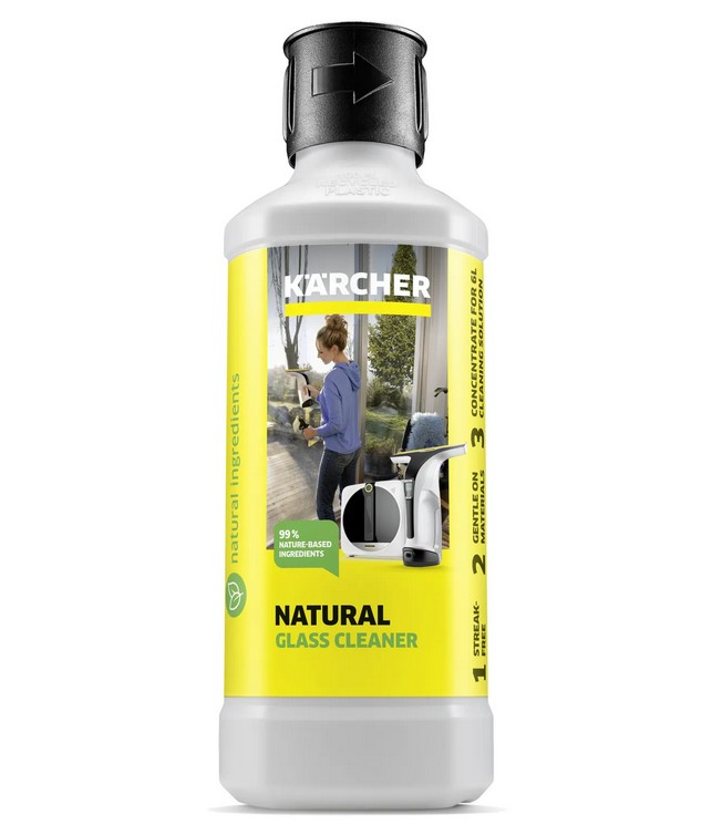 Der neue Kärcher natürlicher Glasreiniger RM 500N besteht zu 99 Prozent aus naturbasierten Inhaltsstoffen und einem Flaschenkörper aus 100 Prozent recyceltem Kunststoff. Das Mittel kann auf Fenstern, Spiegeln, Duschkabinen, Glastischen und Autoscheiben angewendet werden und ist die ideale Ergänzung für Kärcher-Fenstersauger und -reinigungsroboter, heißt es.