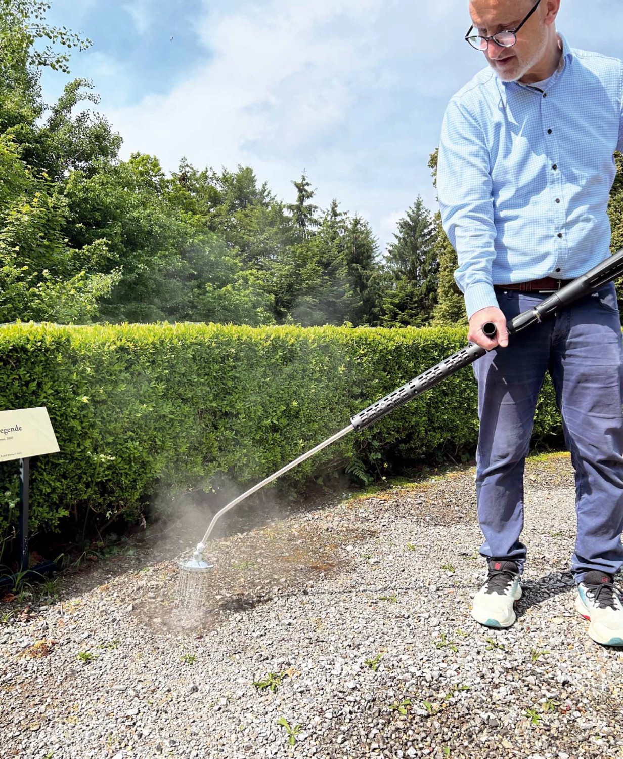 Wer Wege und Flächen von Wildwuchs freihalten muss und dabei auf den Chemie-Einsatz verzichten will, muss entweder zu mechanischen Mitteln wie Wildkrautbürsten, die aber je nach Bauart, oft auch die Pflasterung beschädigen, oder er greift gleich zum Unkrautfuchs 4.0. Da hier nur mit heißem Wasser gearbeitet wird, besteht auch keine Brandgefahr wie beim Abflämmen mit dem Gasbrenner.