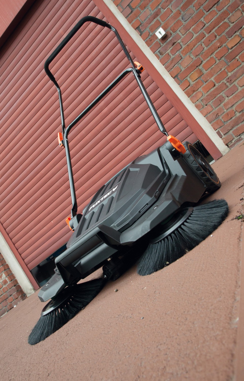 Mit unter 10 kg Gewicht lässt sich die Kehrmaschine leicht bewegen. Glatte Flächen wie Terrassen oder gepflasterte Einfahrten sind schnell wieder sauber. Dank der beidseitigen Rundbesen ist wandnahes Fegen ebenfalls kein Problem. Nasses Laub erfordert im Test oft mehrmaliges Überfahren. Etwas härtere Bürsten könnten hier Abhilfe schaffen. Die weichen Bürsten haben aber auch Vorteile, wenn es z.B. darum geht den Heimwerker-Keller oder die Garage wieder „auf Vordermann“ zu bringen, denn auch in Innenräumen macht die Maschine dank ihrer Wendigkeit einen guten Job.