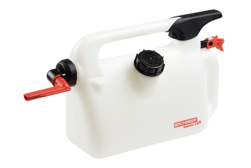 Der Kanister ist transparent und verfügt über ein Auslassventil, das per Daumendruck geöffnet wird. Das Einfüllrohr ist schwenkbar. Es ist groß genug für zügiges Befüllen und klein genug, um auch in die kleinen Tanks z.B. von Kettensägen zu passen. Dabei ermöglicht die Formgebung stets den Blick auf den Füllstand. Damit das Befüllen des Kanisters ebenfalls sauber gelingt, verfügt er über eine große Einfüllöffnung und eine Füllskala. Das Auslassventil wird bei Nichtgebrauch verriegelt.