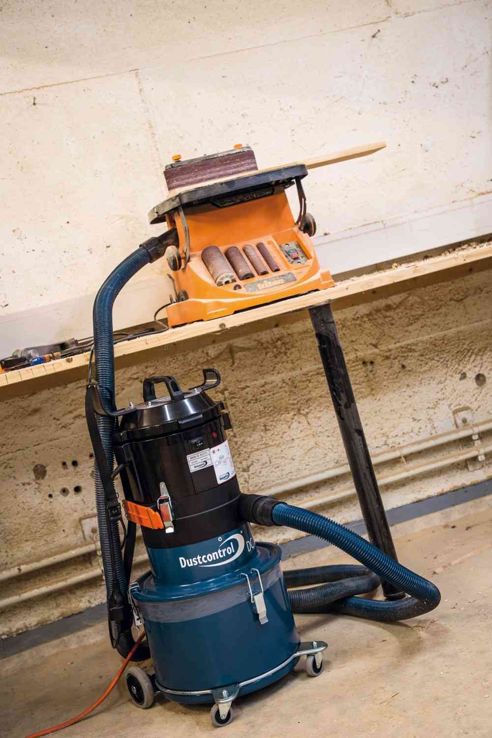 Schon auf dem Weg zum ersten Einsatz sammelt der Sauger die ersten Pluspunkte: Dank der großen Rollen überwindet er auch kleine Hindernisse wie Türschwellen oder Bodenunebenheiten problemlos. Das haben wir bei Saugern mit den bekannten kleinen Möbelrollen schon anders erlebt. In der verlagseigenen Holzwerkstatt sind die Kollegen unseres Schwestermagazins KLANG+TON gerade damit beschäftigt, ein paar selbst konstruierte Lautsprecherboxen zu bauen. Beim Sägen, Fräsen und Schleifen fällt reichlich „Futter“ für den DC 1800 eco an. Wir haben den Sauger sowohl im Solobetrieb zum Reinigen nach getaner Arbeit genutzt, als auch im Automatikbetrieb mit angeschlossenem Elektrowerkzeug, das dann das Ein- und Ausschalten des Saugers übernimmt. Beides hat der Sauger bestens erledigt. Gut gefallen hat uns das Entleeren des Staubbehälters durch den einfachen Beutelwechsel. Das geht schnell und absolut sauber. Im Gegensatz zu vielen Wettbewerbern ist das Abklopfen der Filter bei diesem Sauger nicht automatisch geregelt sondern muss manuell erledigt werden. Dies ist durch die beiden zylindrischen Zyklon-Filter bedingt, für die eine Abklopfvorrichtung extrem aufwendig wäre. Hat man sich aber einmal daran gewöhnt, dies ein- oder bei starkem Staubanfall zweimal am Tag zu erledigen, geht das Ganze in einer Minute von der Hand. Was uns ein wenig gestört hat, sind fehlende Markierungen für den Zusammenbau der einzelnen Maschinenkomponenten nach der Reinigung.