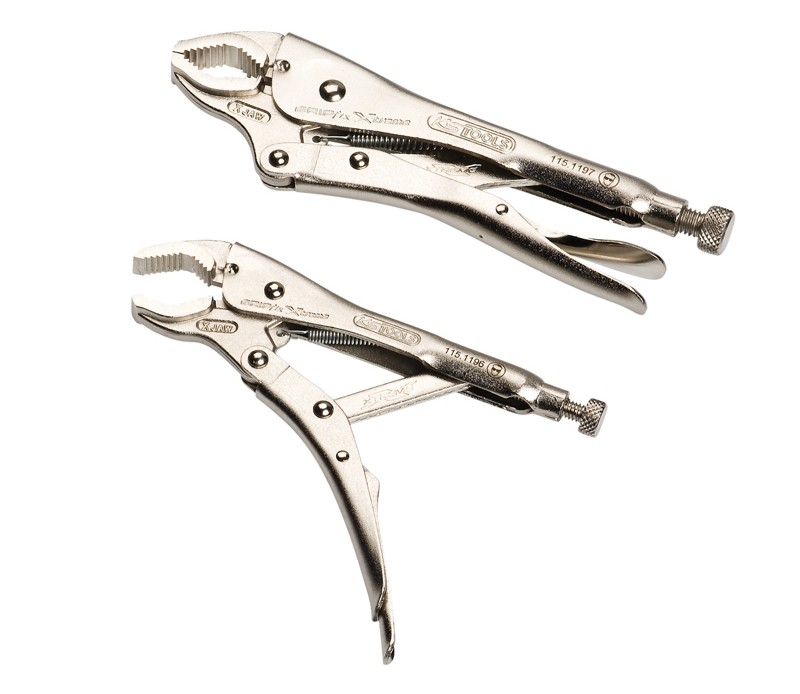 Die Zangen von KS Tools sind in zwei Größen erhältlich. Einmal mit einer Länge von 186 Millimetern und einmal mit 225 Millimetern. Laut Hersteller verfügen sie über eine ca. 3-mal stärkere Haltekraft als herkömmliche Klemmzangen gleicher Größe. Während die kleine Zange über eine „normale“ Entriegelung verfügt, wird bei der großen die Druckrichtung des Lösehebels umgekehrt.